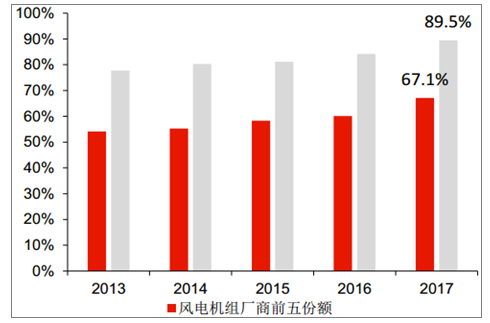 2017 年,中國風電統(tǒng)計有新增裝機的整機制造企業(yè)共 22 家。相較于歐洲市場主流廠商不超過 10 家,美國市場 VESTAS、 GE、 SIEMENS 三家市占率達到 95%,國內(nèi)在風電平價上網(wǎng)前仍將面臨新一輪整機產(chǎn)能出清。 降價是龍頭企業(yè)維持企業(yè)市占率提升所采取的主動市場策略,一方面通過規(guī)模效應及成本控制部分消化降價帶來的毛利率下滑;另一方面,推動技術創(chuàng)新,提升風機可利用率,為客戶提供全生命周期解決方案。