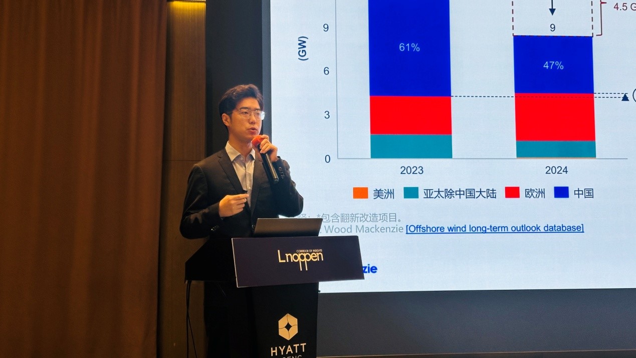 伍德麥肯茲海上風(fēng)電市場分析師王宇凡以《全球海上風(fēng)電市場的現(xiàn)實與機遇》為題發(fā)表了演講,分享了全球海上風(fēng)電市場現(xiàn)狀、市場的動態(tài)調(diào)整以及未來發(fā)展的關(guān)鍵因素。