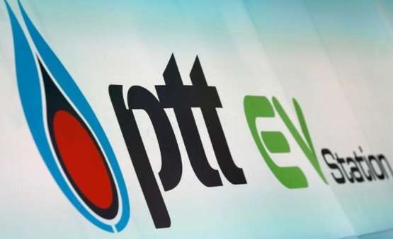 文件圖片:2016年8月15日,泰國(guó)曼谷的商用EV(電動(dòng)汽車(chē))充電站啟用期間,PTT Pcl能源公司的標(biāo)志被看到。路透社/ Jorge Silva / File Photo
