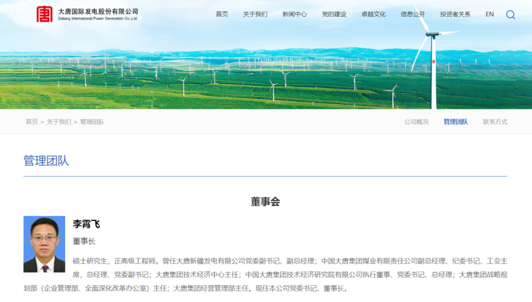 李霄飛,碩士研究生,正高級(jí)工程師。曾任大唐新疆發(fā)電有限公司黨委副書(shū)記、副總經(jīng)理;中國(guó)大唐集團(tuán)煤業(yè)有限責(zé)任公司副總經(jīng)理、紀(jì)委書(shū)記、工會(huì)主席,總經(jīng)理、黨委副書(shū)記;大唐集團(tuán)技術(shù)經(jīng)濟(jì)中心主任;中國(guó)大唐集團(tuán)技術(shù)經(jīng)濟(jì)研究院有限公司執(zhí)行董事、黨委書(shū)記、總經(jīng)理;大唐集團(tuán)戰(zhàn)略規(guī)劃部(企業(yè)管理部、全面深化改革辦公室)主任;大唐集團(tuán)經(jīng)營(yíng)管理部主任。現(xiàn)任大唐國(guó)際黨委書(shū)記、董事長(zhǎng)。