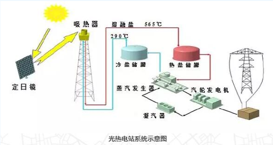 光熱電站位于光伏電站南側(cè),采用塔式熔鹽技術(shù),儲(chǔ)熱時(shí)長為12小時(shí)。