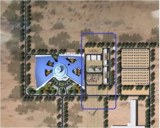 儲(chǔ)能電站在光熱用地范圍的西北角,毗鄰330千伏匯集站,占地面積約100公頃。