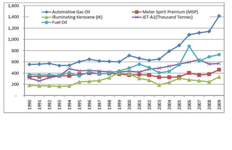 下圖描繪了肯尼亞化石燃料消費(fèi)的趨勢(shì):