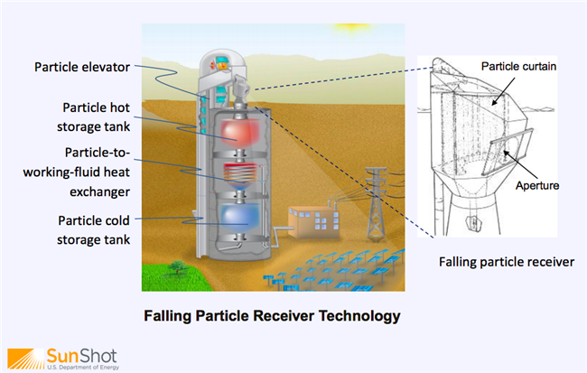 目前,研究人員已經(jīng)研究了多種類型的粒子,而在此過程中,沙子的低成本優(yōu)勢得以顯現(xiàn)。當(dāng)系統(tǒng)輸出功率為5MW時(shí),這種粒子吸熱器將需要2000噸沙子進(jìn)行循環(huán)工作。